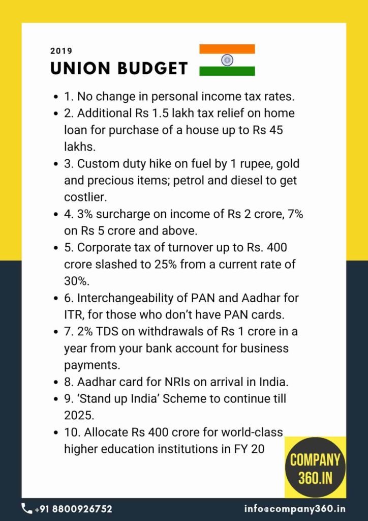 Key Announcements for Budget 2019