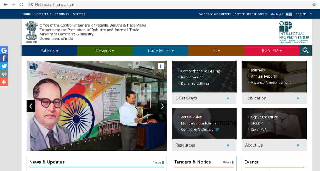 To access the main site of Intellectual Property i.e. http://www.ipindia.nic.in/, and click on the E-Gateways as shown in the below image.